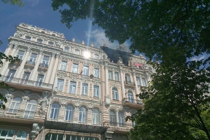 На улице Городецкого в центре Киева произошел пожар в историческом здании, более известном как дом Гинзбурга. Как сообщает "Громадське радіо", пожар возник на шестом, последнем этаже здания, пишет 112.