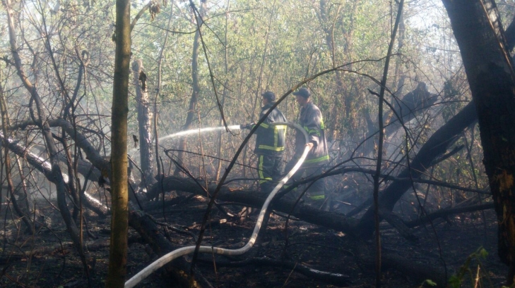 В Киеве на Трухановом острове горит около 3 га травы и деревьев