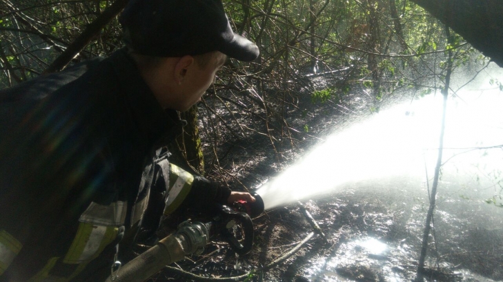 "30 апреля в 11:27 поступило сообщение о возгорании травяного настила и деревьев в южной части Труханова острова. По прибытию пожарно-спасательных подразделений было установлено, что горит около 3 га травяного настила и деревьев. Тушение пожара осложняется отсутствием проезда для пожарной техники", – говорится в сообщении.
