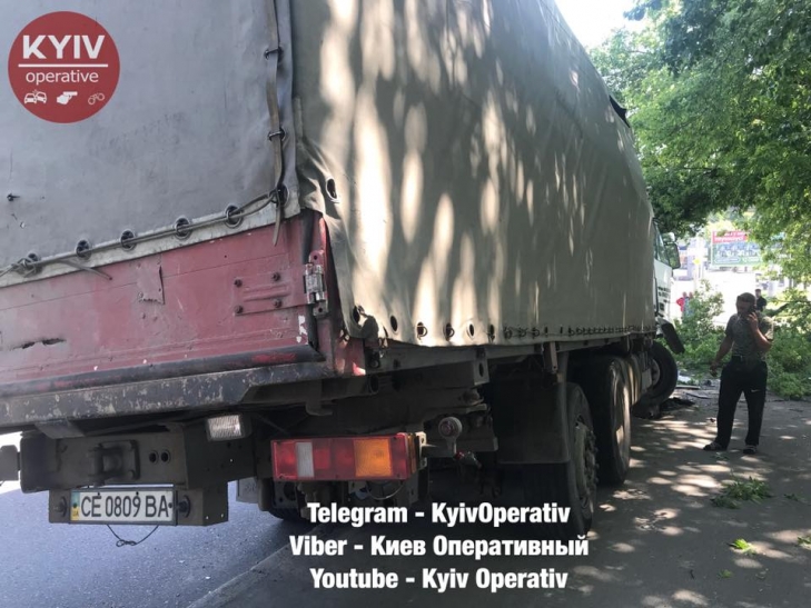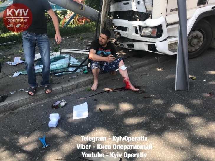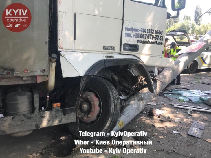 В Киеве на Лобановского грузовик на скорости снес столб и вылетел на тротуар