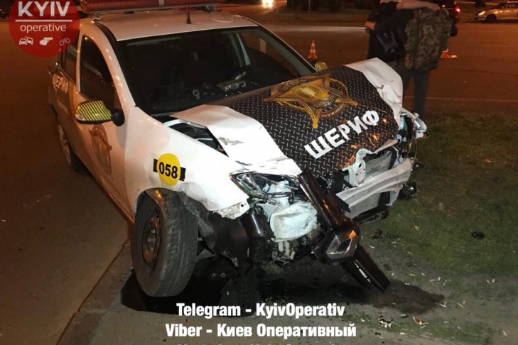 В этот момент, из стороны Вернадского ехал автомобиль Renault, принадлежащий охранной фирме "Шериф". В результате столкновения двух автомобилей, KIA отбросило в столб.