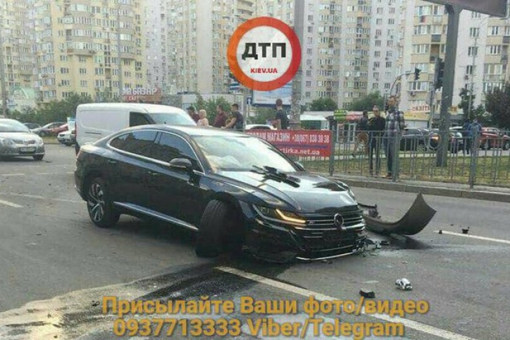 В Киеве на пересечении улиц Анны Ахматовой и Урловской столкнулись два легковых автомобиля - Volkswagen Arteon и Daewoo Lanos.