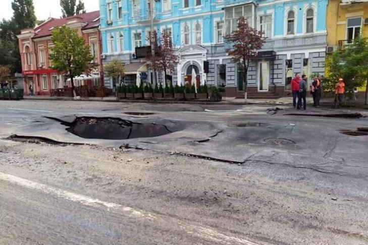Асфальт провалился в нескольких местах, из-за чего дорогу перекрыли для проезда автомобилей. Отметим, что инцидент произошел неподалеку от здания "Укравтодора".