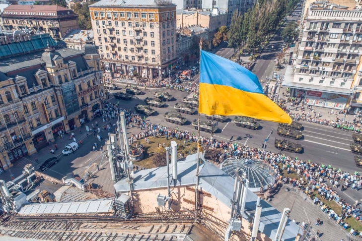 В центре Киева на Крещатике прошел военный парад, посвященный 27-й годовщине Независимости Украины. Онлайн-трансляцию проводил "112 Украина". Всего, как и анонсировалось ранее, по Крещатику прошли 4,5 тыс. военнослужащих и 250 единиц военной техники.
