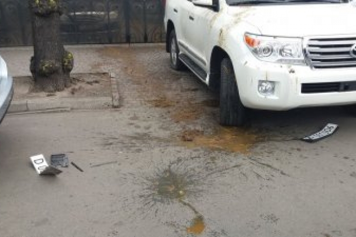 В Киеве машины российских дипломатов неизвестные облили нечистотами.