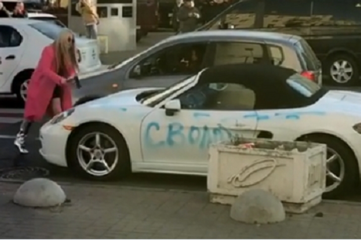 В Киеве девушка написала на Porsche "сволочь" и разбила авто топором