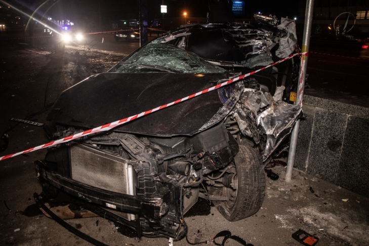 Жуткая авария случилась напротив завода "Антонов". Автомобиль направлялся в сторону станции метро "Нивки". В полиции сообщили, что он двигался со скоростью 100 километров в час. Водитель не справился с управлением, его протянуло по дороге приблизительно 150 метров.