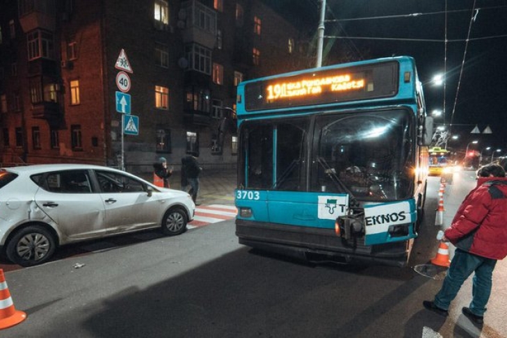 По предварительной информации, оба транспортных средства двигались в сторону Севастопольской площади. Троллейбус двигался по полосе общественного транспорта, а Seat поворачивал налево, чтобы заехать на улицу Петра Нищинского.