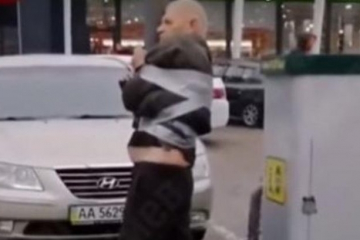 В Киеве после ДТП водителя-виновника примотали скотчем к столбу, чтобы он не сбежал до приезда полиции. Случилось это на автозаправочной станции на Кольцевой дороге.