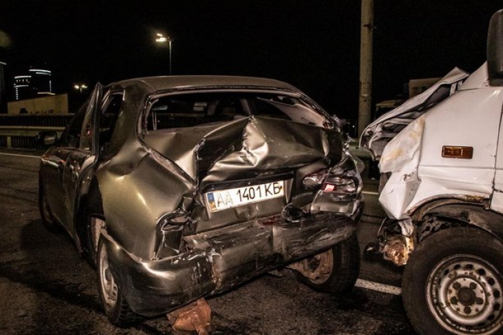 В четверг, 25 апреля, в Киеве на Южном мосту произошло ДТП с участием двух автомобилей. Mercedes Sprinter на большой скорости влетел в едущий впереди Lanos. В результате столкновения пострадал водитель легковушки. Врачи скорой помощи госпитализировали его с травмой головы, сообщает "Информатор".