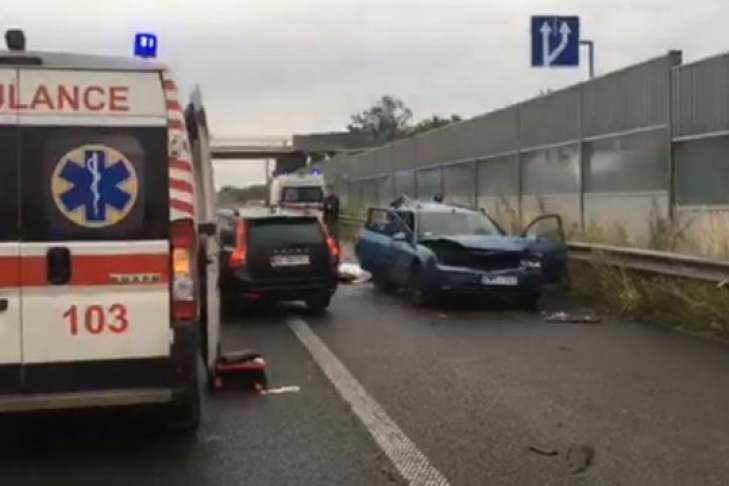 Под Киевом на Житомирской трассе рано утром 15 июля случилось крупное ДТП: столкнулись маршрутка и легковой автомобиль, после чего микроавтобус ударился об отбойник, а Ford был сильно смят и детали машины разлетелись по трассе.