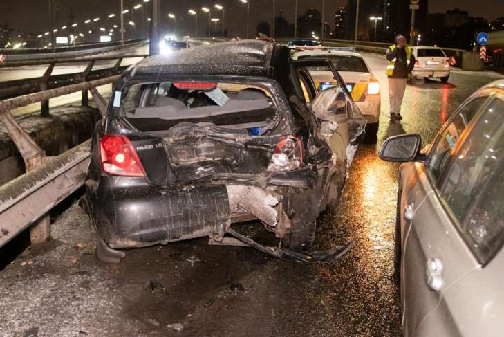 Авто превратилось в "гармошку": на Южном мосту столицы произошло тройное ДТП