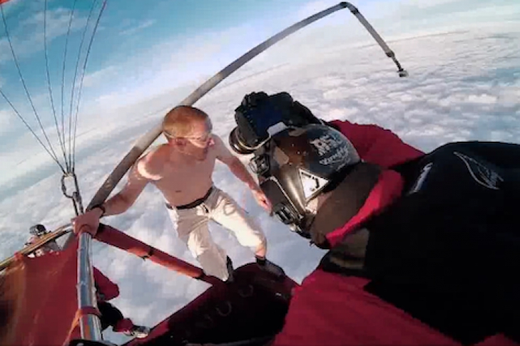 Горячий финский парень Антти Пендикяйнен похоже стал первым человеком, осуществившим прыжок с воздушного шара без парашюта. В свободном падении мужчина находился 40 секунд, за которые он успел зацепиться за своего помощника с парашютом. Воздушный шар находился на высоте четырех километров.
