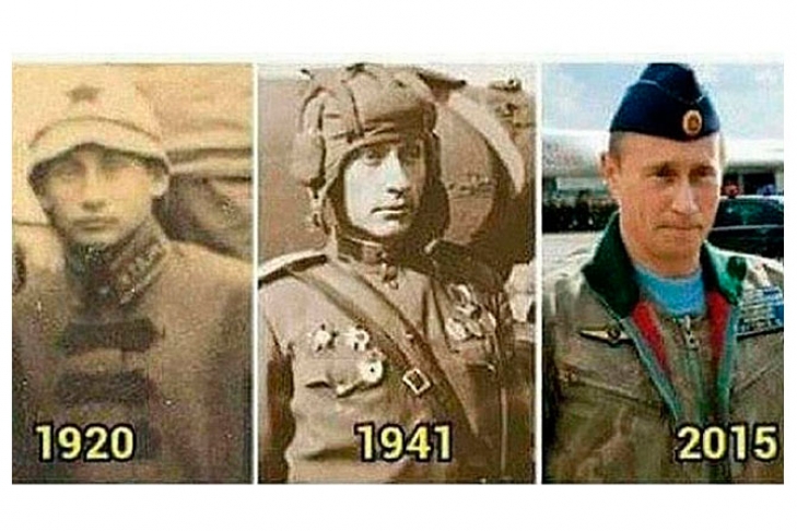 По мнению британской The Telegraph, бессмертный "горец" из одноименной фантастической саги существует на самом деле; более того, он управляет Россией! Газета представила на суд общественности два архивных "фронтовых" снимка 1920-го и 1941-го годов, на которых прекрасно виден… молодой Путин в военной форме! Для пущего эффекта рядом размещена свежая фотография российского президента.