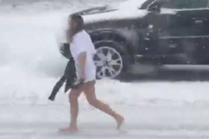 Босая американка в трусах оказалась на улице во время шторма (ВИДЕО)