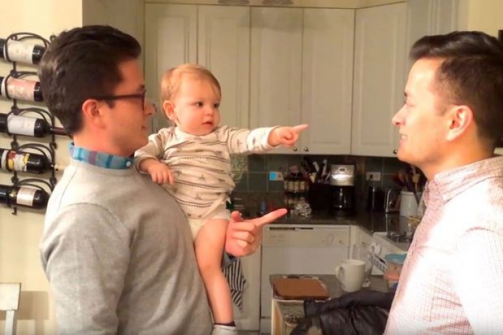 Главные герои опубликованного ниже ролика – 16-месячный Рид, его папа Стивен и Майкл, брат-близнец Стивена. Когда мальчик оказался между двух практически одинаковых с виду мужчин, он долго не мог понять, кто из них его отец, а кто — дядя. Братья передают Рида друг другу, и всякий раз ребенок говорит, что папа – это другой мужчина.