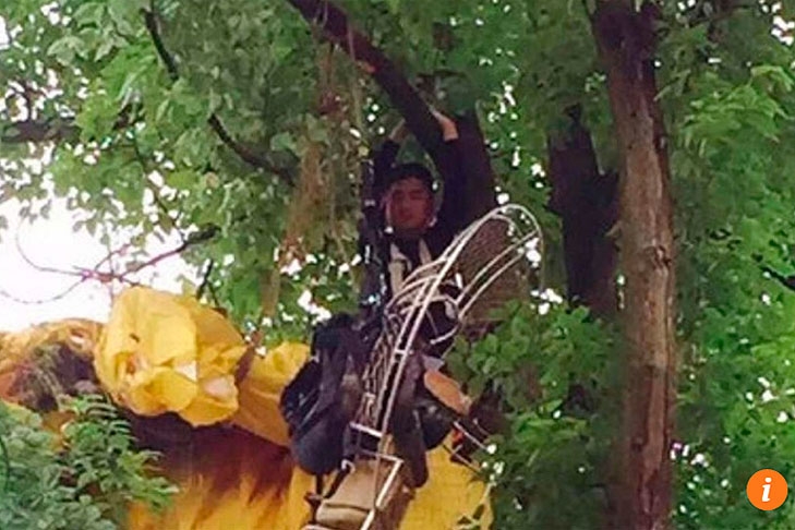 Инцидент произошел в городе Ичан (провинция Хубэй). Мужчина, чье имя издание не сообщает, прыгнул с парашютом ради романтики. Однако из-за сильного порыва ветра китайца отнесло к дереву.