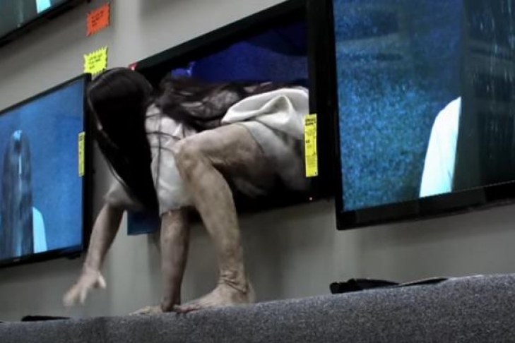 Посетителей магазина шокировала девочка из "Звонка", которая вылезла из телевизора (ВИДЕО)
