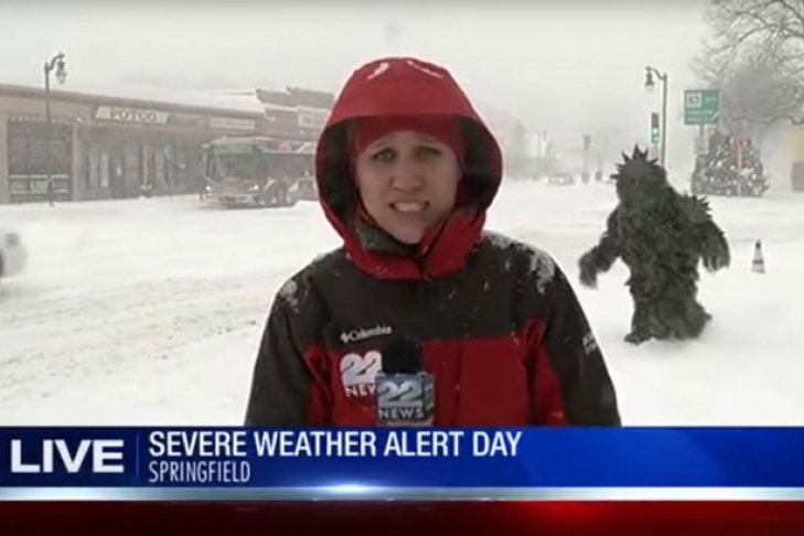Странного вида "снежный человек" внезапно появился в эфире американского телеканала WWLP, когда метеоролог Дженнифер Пэйджилай вела репортаж об аномальных снегопадах в городе Спрингфилд, Массачусетс. Зрители передачи прозвали забавного "йети" человеком-сорняком.