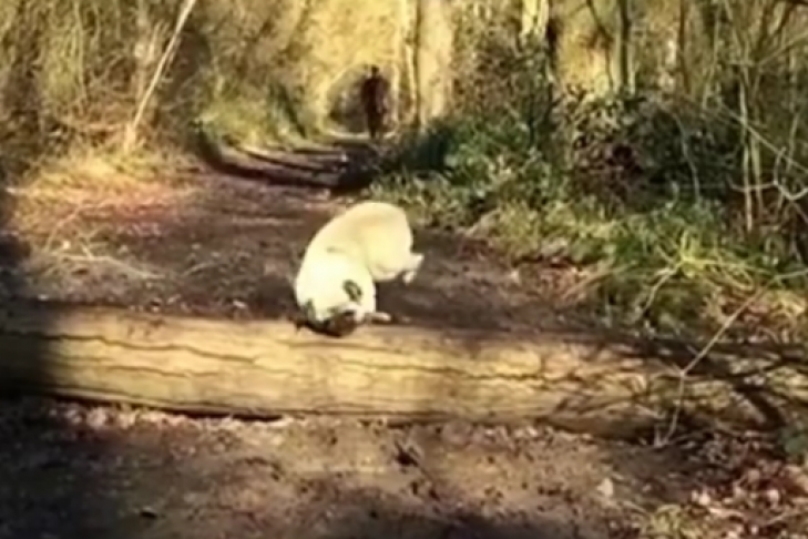 Не в форме: толстый мопс не смог перепрыгнуть бревно (видео)