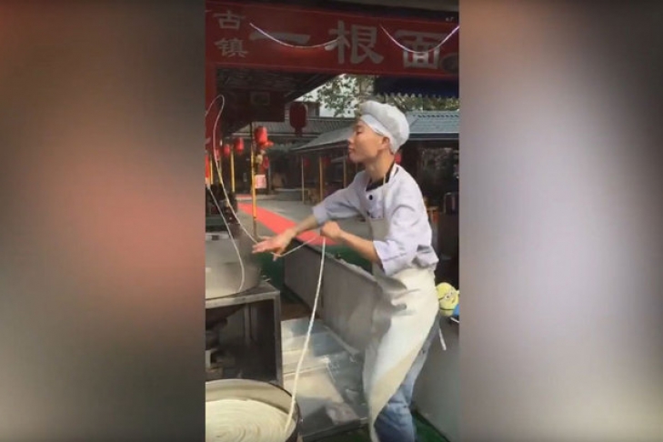 Готовящий невероятно длинные макароны повар из китайского города Чэнду, столицы провинции Сычуань, стал звездой местных соцсетей после того, как видео с его танцем на рабочем месте попало в Сеть. Зрители отмечают, что мужчина не только прекрасно двигается, но и обожает свое дело, сообщает Metro.