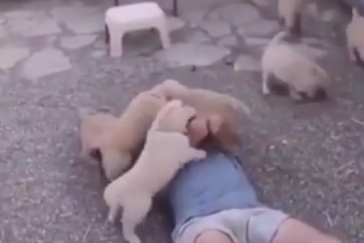 Осторожно, очень мило: стая маленьких щенков атаковала мужчину (видео)