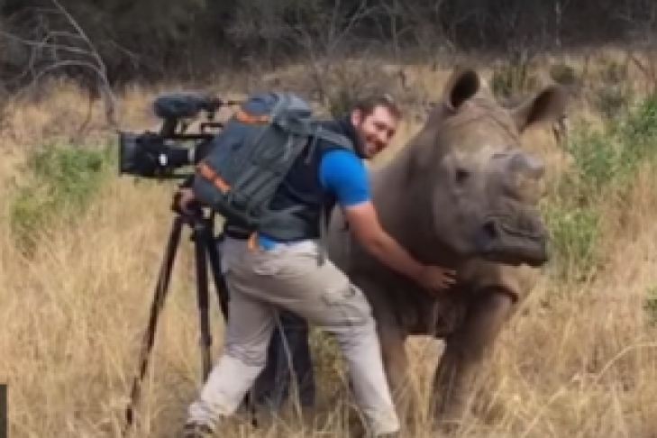 Оператор Гарт де Бруно Остин снимал в Южной Африке носорогов, когда одна из самок подошла к нему и начала ластиться. Мужчина не испугался и почесал пузо дикому животному.