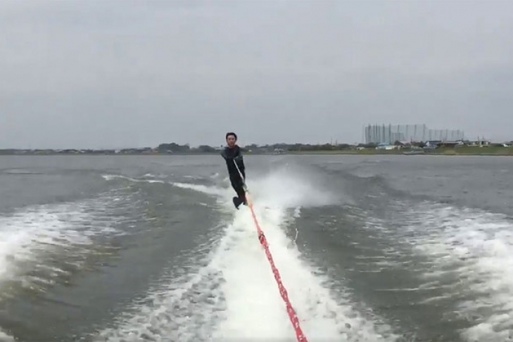 Забавное происшествие, которое попало на видео, было снято на реке Тонэ, протекающей по территории японского региона Канто на острове Хонсю. Пострадавшим оказался местный житель по имени Мироку, член воднолыжного клуба Waseda Waterski Team, сообщает Rocket News.