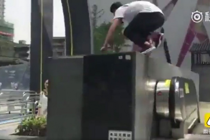 На своем пути между станциями Chongqi Lu и Dongmen Qiao студенту одного из местных колледжей Хоу Жуну пришлось огибать пешеходов, перепрыгивать через бетонные заборы и изгороди и даже перекатываться по земле, сообщает South China Morning Post и публикует видео забега.