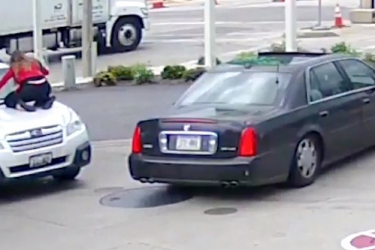 Американка прыгнула на капот кроссовера, чтобы остановить угонщика