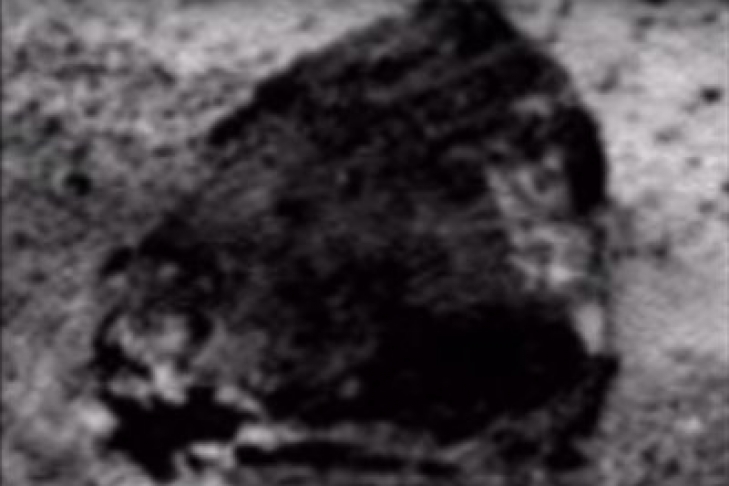 Исследуя найденный объект, уфолог заметил, что на его боку имеется светлое прямоугольное пятно, которое вполне может оказаться названием или номерным знаком "капсулы".