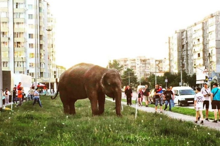 В Ивано-Франковске видели слона, пасущегося на газоне