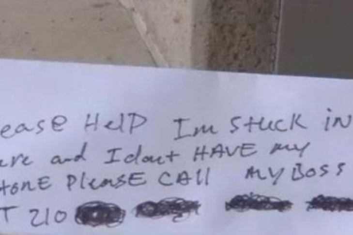 "Пожалуйста, помогите. Я застрял здесь, у меня нет телефона. Пожалуйста, позвоните моему начальнику", - сказано в записке, которая попала в руки пользователя банкомата. Дальше мужчина указал номер телефона.