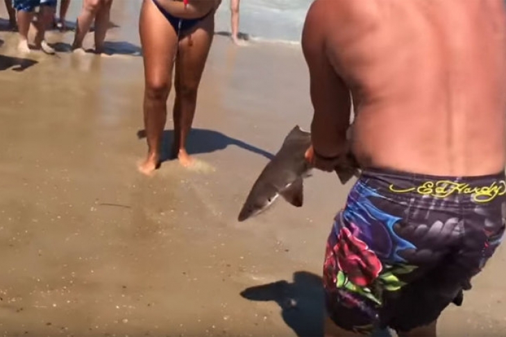 Отдыхающие спасли акулу, выбросившуюся на пляж (видео)
