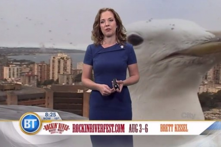 В эфире утреннего шоу Breakfast Television, выходящего на канадском канале City, во время прогноза погоды позади ведущей Тары Джин появилась гигантская чайка. Птица уселась возле камеры, транслирующей в студию вид на Ванкувер. Об этом сообщает MSN.