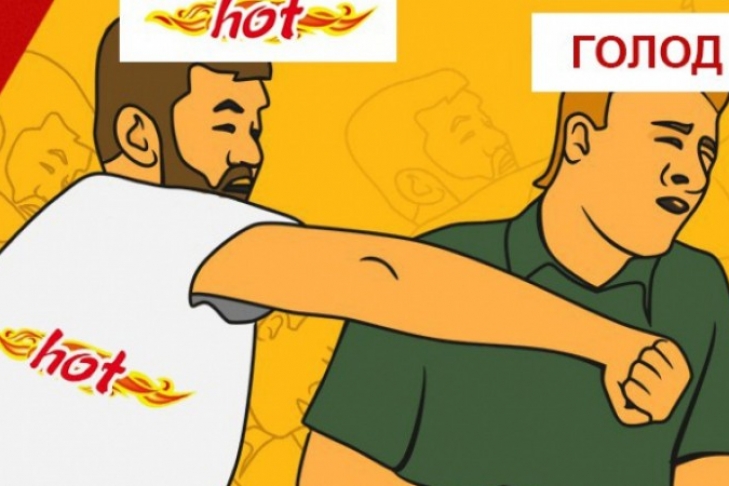 Рекламный баннер был опубликован в социальных сетях. Для его создания через фильтры был пропущен телевизионный кадр, на котором в день ВДВ мужчина бьет по лицу журналиста. Нападавший подписан как Hot, а журналист – как голод.