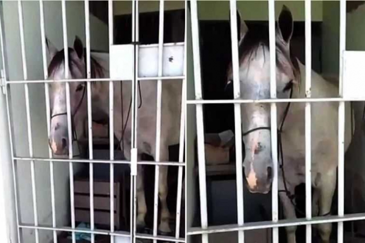 Хозяин возмутился, что в участке лошадь не кормили, не поили и посадили в тесную конуру.