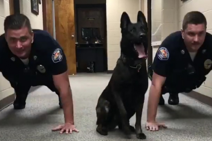 Сотрудники полиции одного из американских городов выложили в Сеть видео, на котором служебная овчарка делает отжимания вместе с двумя полицейскими.