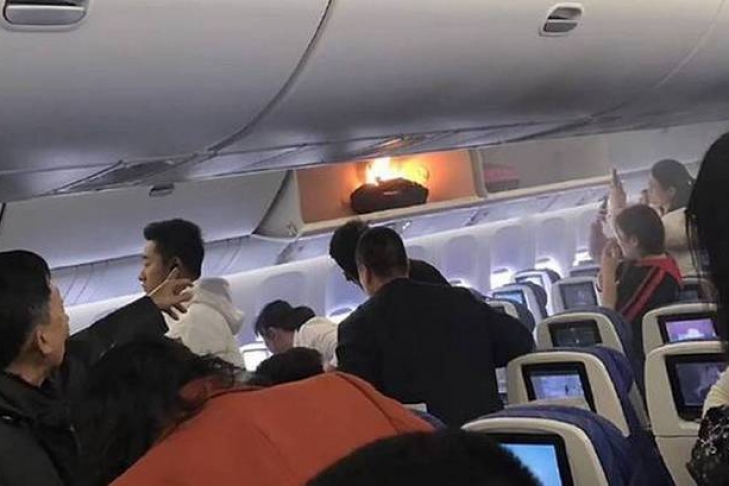 Инцидент произошел в воскресенье утром в салоне Boeing 777-300ER авиакомпании China Southern Airlines. Вспыхнувшая литиевая батарея (power bank) находилась в сумке, которую владелец разместил на верхней полке. Что послужило причиной возгорания, пока остается неизвестным.