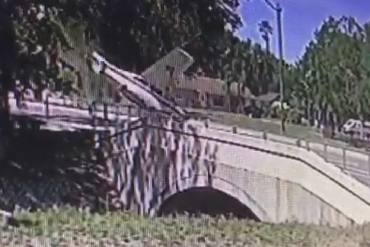 Аварийная посадка самолета Cessna, совершенная пилотом в городе Киссимми в штате Флорида на юго-востоке США, попала в объектив камеры наблюдения.