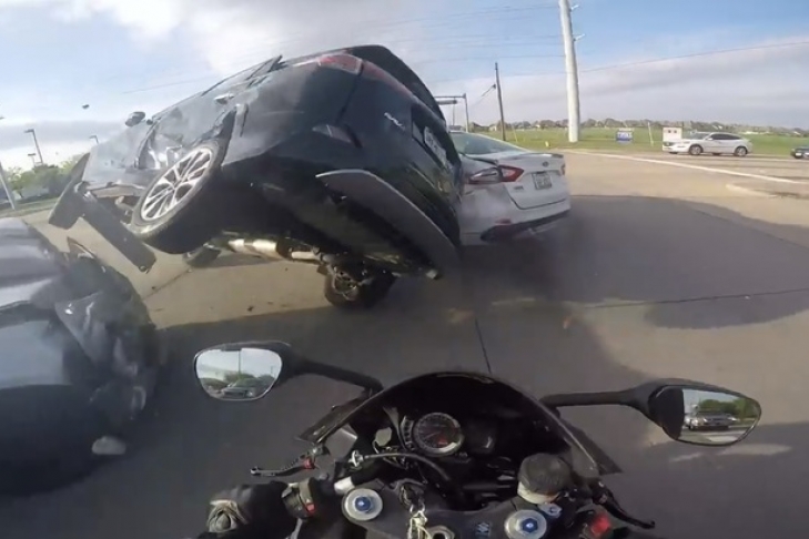 Везучий мотоциклист чудом уцелел с серьезном ДТП в США (видео)