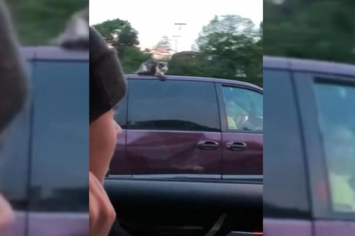 Кошка прокатилась на крыше минивена на скорости 100 км/ч (видео)