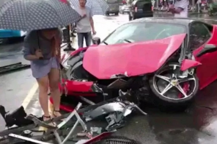 Інцидент трапився у китайському місті Венлінг. Молода панянка узяла в аренду італійський суперкар Ferrari 458 Italia і через кілька хвилин втратила над ним контроль та врізалась у огорожу.