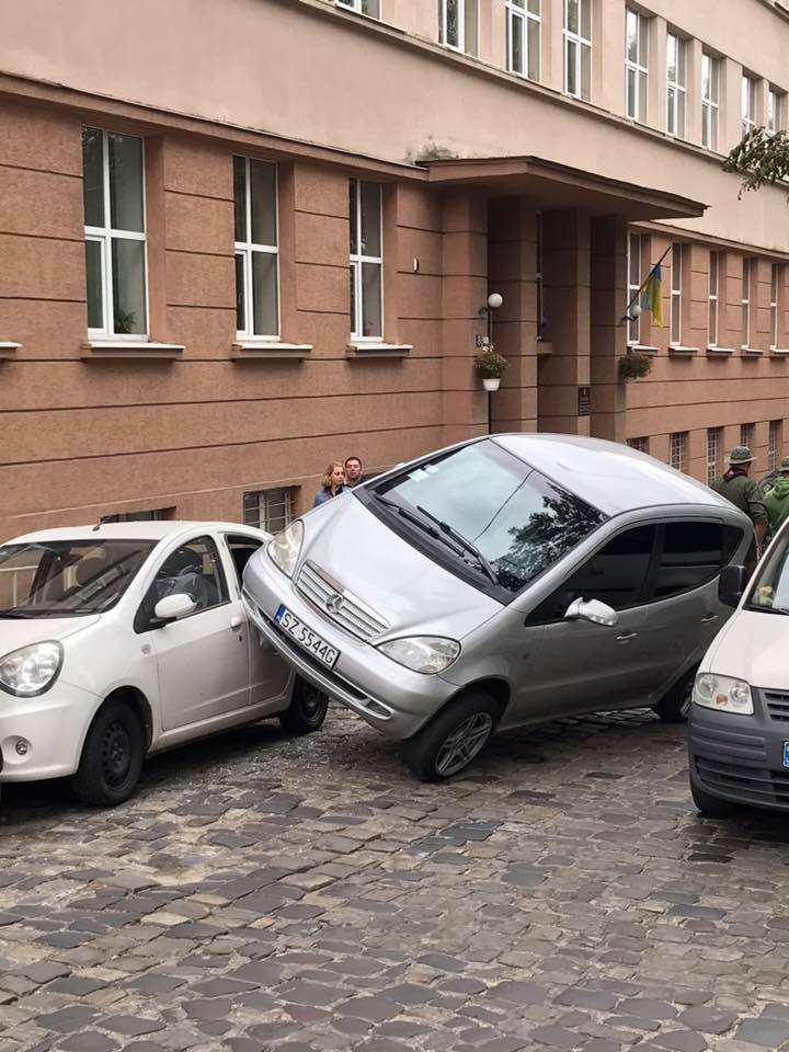 Во Львове девушка удивила сеть тем, как припарковалась. По словам очевидцев, прежде чем остановиться она "проехалась" по трем машинам. Фото разместили в сообществе "РАГУlive" в Facebook.