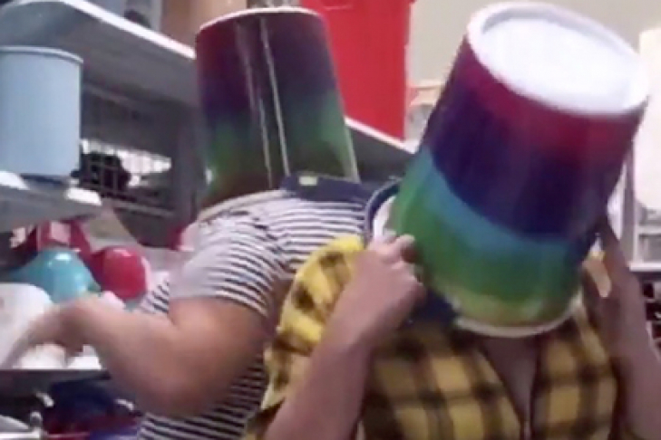Женщина надела ведро на голову покупателю и прославилась (видео)