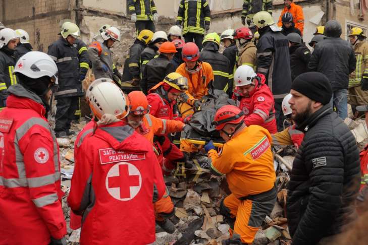 На місці інциденту продовжуються рятувальні роботи. Співробітники ДСНС розбирають завали у пошуках постраждалих людей. Під завалами перебуває жінка із тримісячною дитиною.