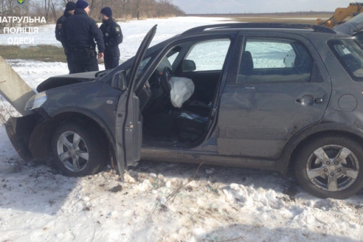 На Одесщине ребенок на кроссовере убегал от полиции и врезался в столб