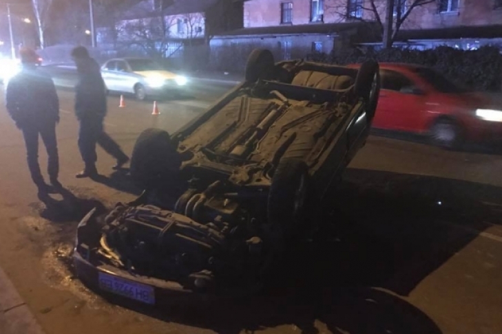 Жуткая авария в Одессе: автомобиль лежит вверх тормашками