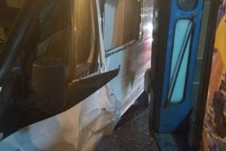 В результате аварии пострадал пешеход, который в это время переходил проезжую часть и оказался между микроавтобусом и трамваем.