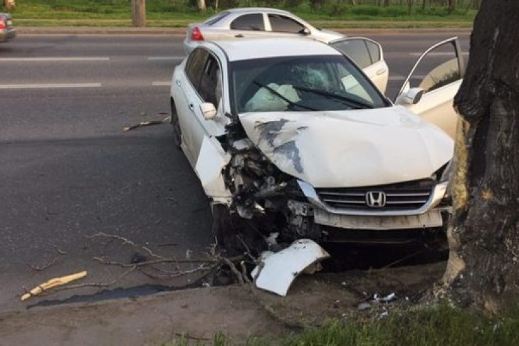 По предварительной информации, мопедист подрезал автомобиль Honda, двигающийся в сторону поселка Котовского. Водитель легковушки принял вправо, наехал на бордюр, от чего у него лопнуло колесо, и врезался в дерево.